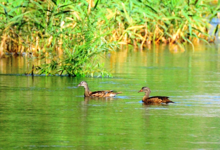 野生鸳鸯“光临”淇河,说明淇河的生态环境正变得越来越好,从而吸引了野生鸳鸯等珍禽来此安家落户。 冯先 摄