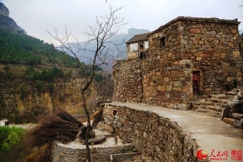 淇县纣王殿村,位于淇县、卫辉、林州三地的交界点。被群山环抱的小村庄,阳春三月,植被葱郁、桃花盛开、百鸟啾鸣,不仅雄踞着“一脚踏三县”的淇县最高峰三县垴,有着三千多年历史的纣王殿遗址更是让人流连忘返,虽在大山深处,但游人纷至沓来,倒也不冷清。目前,该村被列为全国传统古村落。登高俯望,藏在群山怀抱的纣王殿村如诗如画。村内清一色由石头建成的古民宅一栋挨一栋,错落有致,浓浓的朝歌遗风犹存。为此,游客称纣王殿为“纣王殿石头城”。村内随处可见的两层高青瓦石屋,都是有着几百年历史的明清古民宅。村民盖房子,多是就地取材,全部用石料。“石屋墙体厚度约半米,很结实,而且冬暖夏凉。”