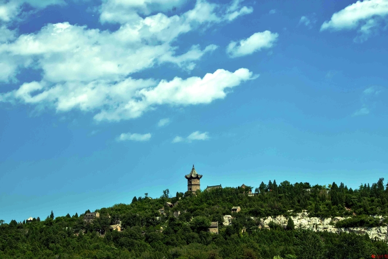 太极宫是大伾山的标志性建筑,是一座八角攒尖楼阁式建筑,建于清康熙十六年(1677年),通高33米,3层,8面,每面宽2.5米,按八卦的方位依次排列的,每面分别嵌有乾、坎、艮、震、离、巽、坤、兑八卦符号,所以太极宫也叫“八卦楼”。楼门开向乾方,八卦中的乾方位是西北方,所以这一整座建筑从吕祖祠到万仙阁都是面朝西北,太极宫门为卷形,门额上刻"众妙之门"四个字。它出自老子的《道德经》中的“玄之又玄,众妙之门”,其意是说道教的教义高深玄妙,这里是进入道教最高境界的门户。楼内有梯可供攀登,底层为吕洞宾醉酒,中层为文昌帝君,上层为三清列真,也就是太清真人太上老君、玉清真人元始天尊和上清真人灵宝天尊。