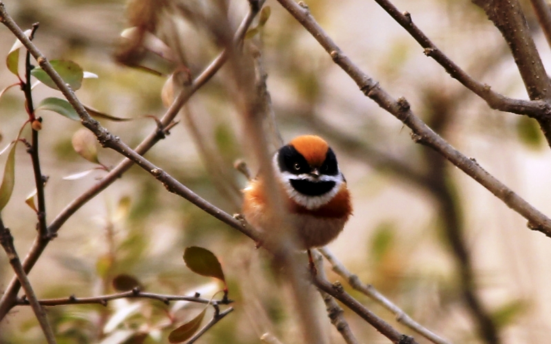 棕头鸦雀,全长约12厘米。头顶至上背棕红色,上体余部橄榄褐色,翅红棕色,尾暗褐色。喉、胸粉红色,下体余部淡黄褐色的鸟类。常栖息于中海拔的灌丛及林缘地带,分布于自东北至西南一线向东的广大地区,为较常见的留鸟。 棕头鸦雀的眼镜像小黑豆,样子萌萌的。