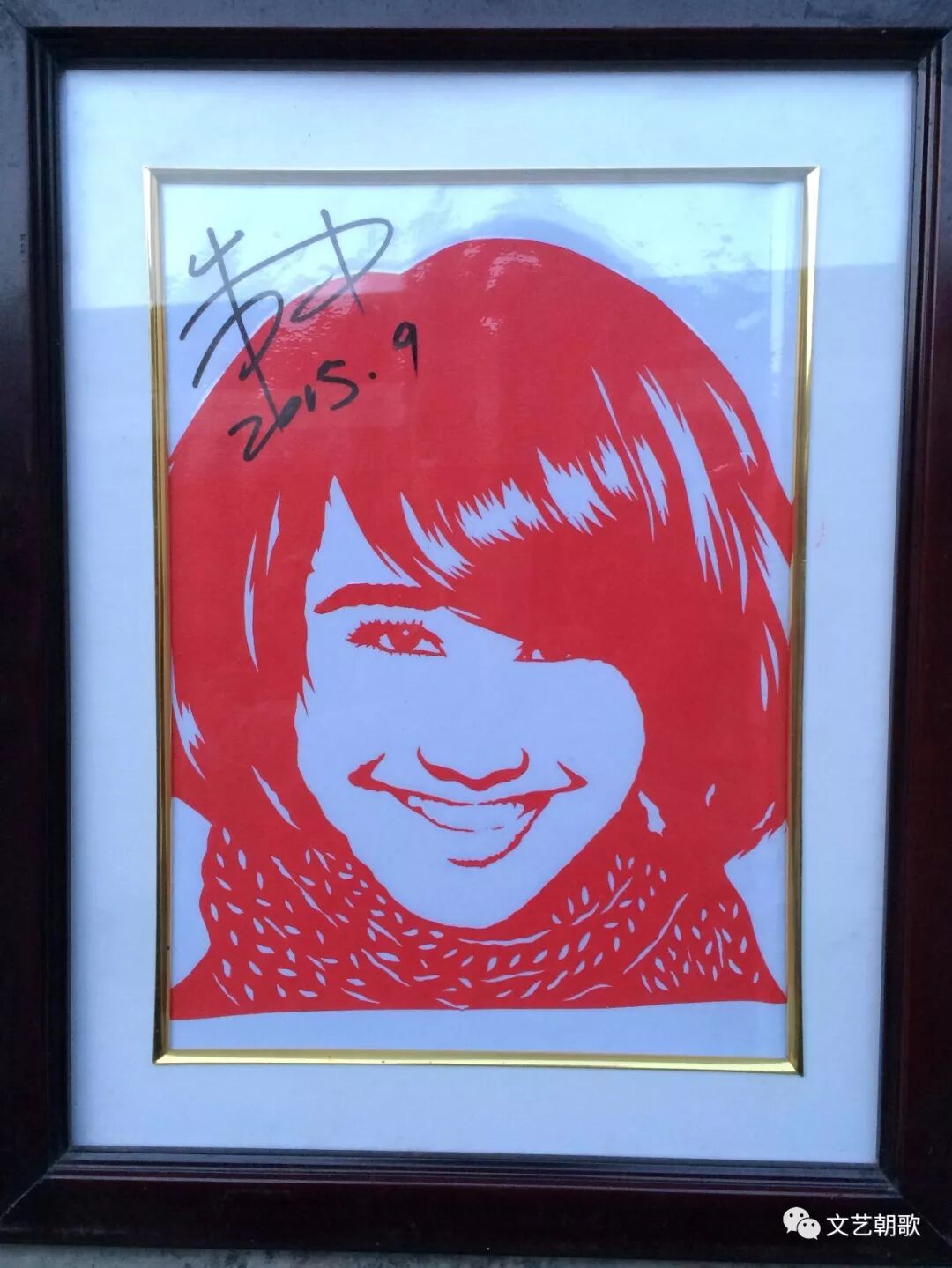 应邀为国内娱乐主持人朱丹制作剪纸肖像