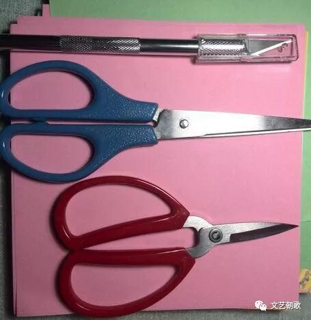剪纸工具(剪纸、刻刀)及原材料(彩纸)