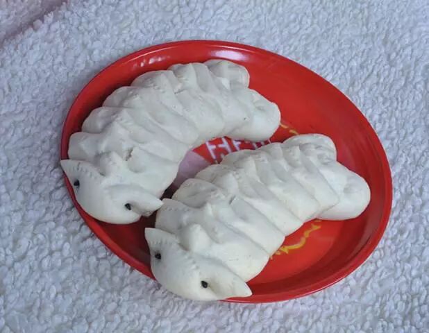 要想捏出好羊来,不是件简单的事情,每道工序都马虎不得。面粉要好,必须是头白面,也就是精粉面,这样蒸出的羊才白、细,成色好。发面要恰到好处,不能不开,不开,蒸出的面瓷、扭;又不能开过,开过了,蒸出的羊虚、变形,让别人笑话。揉面要到,所谓到,就是把发好的面团,放在案板上,加干面,反复搓揉,直到把面条搓揉得柔如钢,硬似铁,光如镜,这样蒸出的羊才鼻是鼻,眼是眼,活生生的。捏羊就不是一般女人能做的活,要找老师儿。老师来了,主人打杂做粗活,备好面团、剪刀、木梳、花椒籽、吃色等。先捏主要的,送羊送羊,羊是主,捏双不捏单,一般是两对四只,也有三对的,四对的。然后就捏杂物儿。杂是根据个人的想象和爱好,可以随心所欲地捏,比方猪、狗、牛、鸡、蛤蟆、鱼、等等,再捏羊蛋。这些东西也不能是单数。剪刀用来剪羊的嘴、鼻子、眼、角、毛、蹄,杂物儿也需要剪刀。花椒籽用来安羊及其它小动物的眼睛。花椒籽不怕蒸,一蒸,花椒籽又黑又亮,眼活了,小动物们有了神采;花椒籽还有个好处,就是能散出浓烈的椒香,椒香能杀菌,延长羊的保质期。有的人家,一时找不到花椒籽,就用绿豆将就。绿豆一遇高温,容易开花,这样,蒸出的羊就成了瞎羊。所以,人们吃花椒的时候,总要留些花椒籽,宝贝似的,用棉布包好,放到干燥处,预备来年蒸羊。木梳是用来给蛤蟆脊梁上身上扎疙瘩的,给鱼,蛇,龙,身上扎鳞片的。老师儿一边捏,一边念叨:剪只羊,不忘娘;剪只白鸡挠墙根;剪只蛤蟆呱呱叫;剪只孬猴上树;剪只胖猪吃肉;剪只老牛拉套;剪条黄狗看门;剪只玉兔上天;剪只小鱼凫氺;剪条盘龙平安……捏好了,在它们身上点上花红柳绿的颜色,最后是上笼。蒸也糊弄不得,讲个火候时辰,这样蒸成的羊才看着乖,吃着甜。