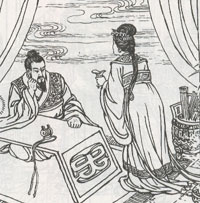 ......东方的美女名曰妲己,是商王朝最后一位君主纣王子受辛的妃子。子受辛聪明英武,可以徒手格杀猛兽,只身倒拉九牛,却不可救药地陷入了“红颜祸水”的旋涡。他终日沉湎于与这位美丽妃子的情爱世界,不仅废理朝政,甚至残杀为国请命的皇后、大臣,他的王国也便顺理成章地土崩瓦解。在周部落的进攻下,朝歌城沦陷,子受辛在堆满金银珠宝的鹿台自焚而死;妲己在传说中被周军俘获,却因其太美丽而无人忍下杀手,最后周相姜子牙也不得不将她美丽的面容用布蒙起来,才亲自把她处死。......